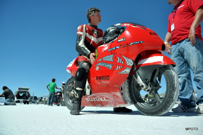 I`m on month three of my MC trip and am currently in Bonneville Salt Flats.The BUB motorcycle speed trials just got done here and I was front and center.